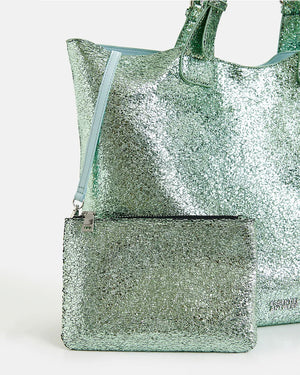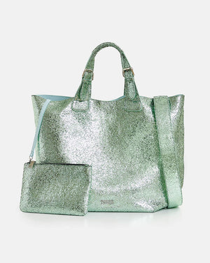 Un sac cabas aqua de la marque Essentiel, il est de la taille parfaite pour mettre toute ses affaires de plage. Une touche brillante à votre tenue ça vous tente ?