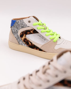 Basket montante de la marque 0-105. Une basket pour femme au code couleur ultra tendance pour la saison printemps-été. Agrémentée de lacets jaune fluo effet éponge et d'une bi-matérialité en cuir, on est fan de ces baskets aussi fashion que confortables!