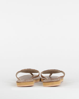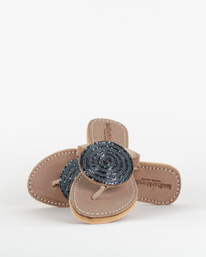 Des tongs de chez Laidback London, pratiques et confortables ! Elles présentent un rond formé de perles noires. Une touche classe et originale qui sera facile à assortir avec vos tenues estivales.