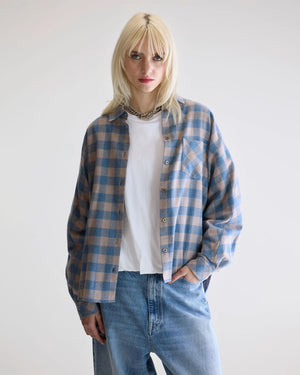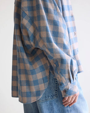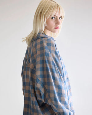 Coupe oversize / Col classique boutonné sur le devant / Manches chauve-souris / Ourlet de chemise très bas / Petites fentes latérales / Motif à carreaux / Poche poitrine