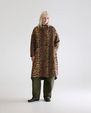 Coupe oversize / Col relevé en babycord bleu marine / Manches longues avec pinces pour plus de volume et épaules tombantes / Fermeture à boutons décalés / Doublure kaki / Coutures latérales ouvertes avec boutons / Plus long dans le dos