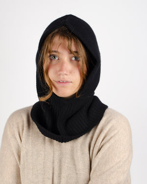 Cagoule femme Notshy noire / Maille douce en cachemire / Coupe enveloppante et ajustée / Chaleur et confort optimal pour l’hiver