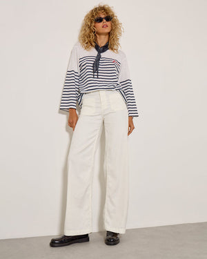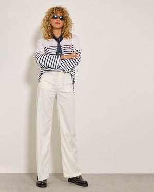 Pantalon intemporel de la marque Five pour femme. Ce pantalon à coupe droite légèrement évasée est parfait pour cet été. Sa matière allie confort et qualité, et on adore ses poches plaquées qui ajoutent un côté à la fois mignon et élégant.