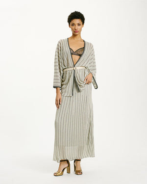 Une cape de couleur acqua pour femme de la marque Momoni. On adore cette cape pour femme parfaite pour cet été avec sa matière en lurex pailleté à rayures.