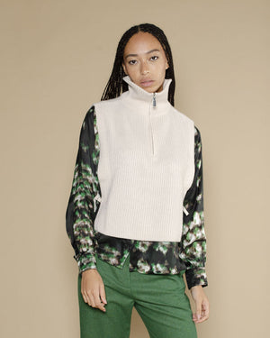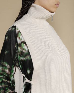 Maille côtelée douce et confortable / Coupe droite et moderne / Col montant zippé / Sans manches, parfait en superposition