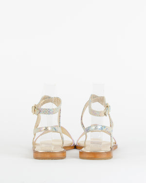Sandales en cuir pour femme de la marque Nimal. Si vous recherchez confort optimal et originalité, ces jolies sandales aux couleurs estivales sont le choix idéal pour compléter vos looks d'été. On adore ces lanières aux teintes holographiques !