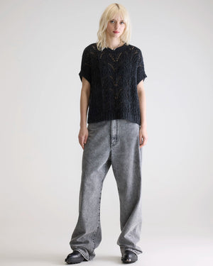 Coupe oversize / Col rond / Épaules tombantes / Sans manches / Motif en tricot ajouré / Tissu doux et léger
