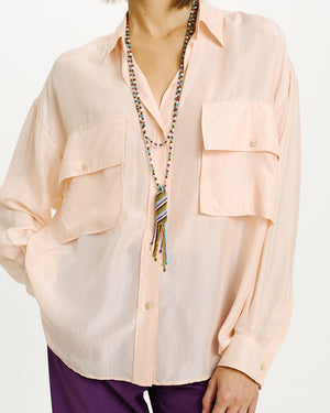 Une chemise en soie rose pour femme de la marque Momoni. On adore cette chemise pour femme, parfaite pour la saison estivale ! Coup de coeur pour la matière très légère de cette chemise pour femme. Retrouvez la collection Momoni ici !