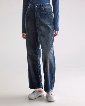 Coupe ajustée aux hanches / Très haute taille, jambes larges / Denim de poids moyen, sans élasticité / Denim de coton à rinçage noir / Braguette zippée