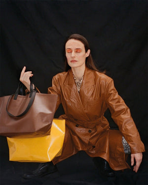 Le sac pratique small marron de la marque Cahu se marie parfaitement avec toutes vos tenues, pour un style chic et intemporel. Avec son mélange de matières made in Europe et son format étanche, ce cabas est la pièce parfaite à porter au quotidien.