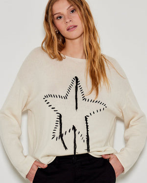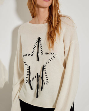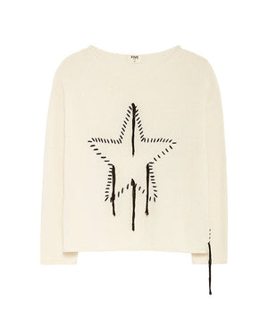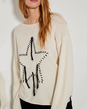 Le pull étoile ivoire à manches longue de chez Five. On craque pour sa broderie étoile effet destroy sur le devant et pour sa coupe ample tendance. Ce pull possède un col bateau. Une pièce passepartout pour cette saison automne hiver.