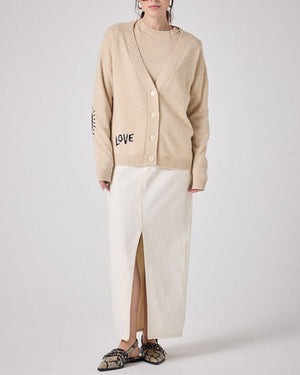 Cardigan manches longues pour femme de chez Notshy. Optez pour ce cardigan 100% cachemire, alliant douceur et élégance. Sa coupe ample, ses finitions côtelées et sa broderie “LOVE” contrastée en font une pièce tendance. Les coudières en forme de cœur ajoutent une touche romantique qu'on adore. Il deviendra un indispensable de votre dressing !