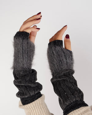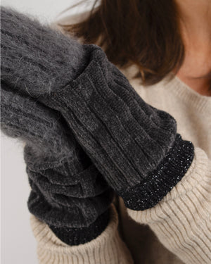 Composition: 30% coton, 24% viscose, 22% polyamide, 20% laine d'alpaga, 3% polyester avec métal, 1% élasthanne