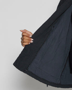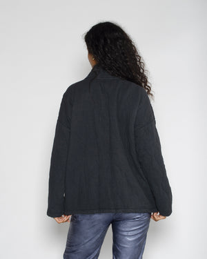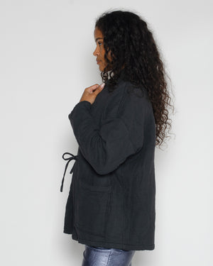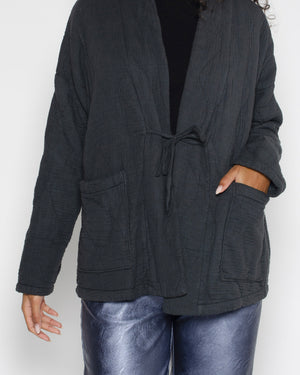 Cette veste pour femme en gaze de coton gris anthracite est ultra tendance pour la mi-saison. Son style japonais/kimono rend cette pièce très mode, et sa matière vous gardera bien au chaud ! Le matelassage ajoute du volume et de la texture à vos tenues. On adore !