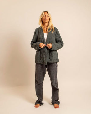 La veste kimono silverlake anthracite pour femme de la collection d'Aokyanos incarne l'élégance moderne et le confort. Conçue pour être portée aussi bien à l'extérieur qu'à la maison, elle s'associe parfaitement à vos tenues préférées. Cette pièce polyvalente reflète l'essence d'Aokyanos, qui transforme l'énergie contemporaine en kimonos stylés et agréables à porter.