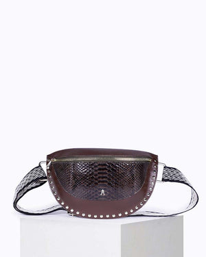 Avec le sac banane Smile clou et python de la marque Craie Studio vous avez le belt bag revisité qui allie style et fonctionnalité. Ce sac est sophistiqué avec des détails hyper mode, on adore de la couleur chocolat ! Fan de la sangle graphique noire et blanche, parfait pour tous vos essentiels, vous n'allez plus quitter cette banane ! Découvrir la nouvelle collection Craie Studio