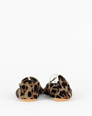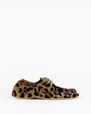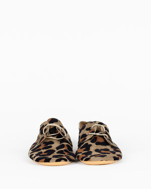 Une paire de derbies à lacet avec motif léopard kaki très chic. Vous pourrez les porter avec une petite robe blanche d'été pour un look chic et élégant. On adore !