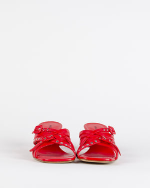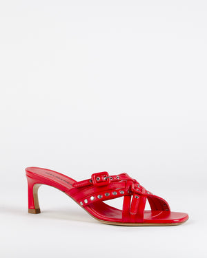 Ces mules rouges sont un "must have" de la saison. Les brides lui confère un côté passe partout et élégant, facilement cassable avec un jean oversize.