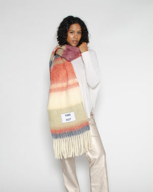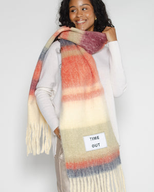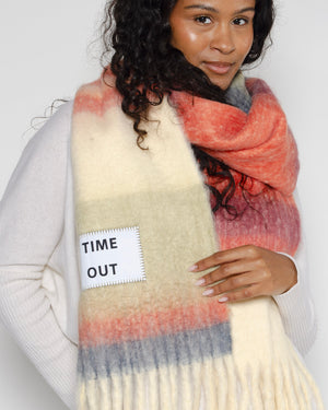 L'écharpe multicolore "Time Out" de Verb To Do est un accessoire coloré et stylé ! Cette écharpe vous démarquera avec élégance cet hiver et ajoutera une touche de vie à vos tenues. On est vraiment fan du design de ces écharpes aux messages sympathiques !