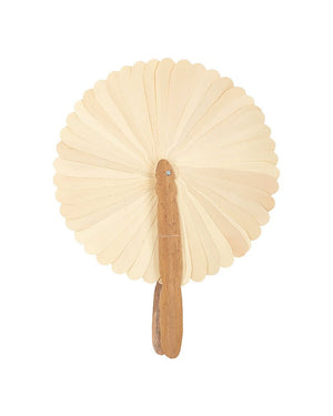 Notez qu'il peut y avoir des irrégularités dans le bois et dans les lattes de feuilles de palmier car nos éventails sont fabriqués à la main de façon artisanale avec des éléments naturellement irréguliers et uniques.