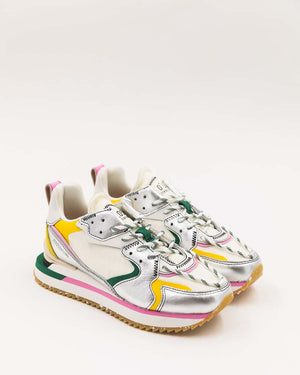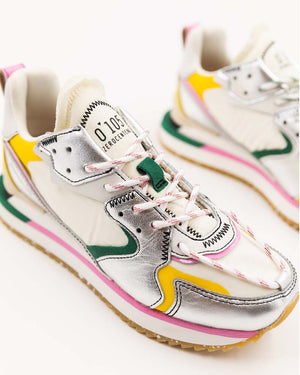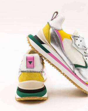 On adore le nouveau modèle de la basket running 0-105 ! Une association de couleurs vives et de cuir argenté, un combo tendance et décalé pour la nouvelle saison printemps été 2024 !