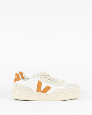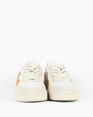 Le modèle V90 est entièrement blanc avec les détails signature de la marque orange ocre. Le modèle est classique et discret avec des empiècements en daim. La paire de baskets pour homme a un look décontracté et facile à assortir au quotidien.