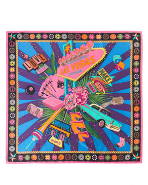 Foulard imprimé fantaisie sur le thème de Las Vegas. Un véritable accessoire de mode pour un look rock et féminin.