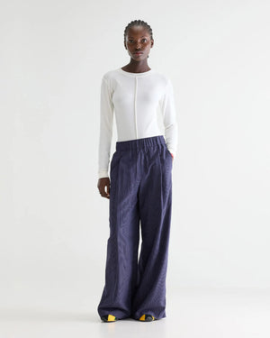 Coupe décontractée / Taille mi-haute / Taille élastique / Jambes larges / Poches passepoilées / Longueur entrejambe : 78 cm (basé sur une taille 26)