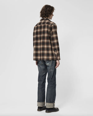 Une sur chemise Vincent à carreaux pour homme de la marque Nudie. Cette sur chemise à carreaux pour homme peut se porter en veste légère car elle reste chaude grâce à la laine.