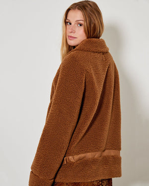 Un blouson Volupte pour femme de couleur camel et de la marque Five. On adore ce blouson en bouclette top tendance et top confort ! Parfait pour une tenue comfy ce blouson moumoute !