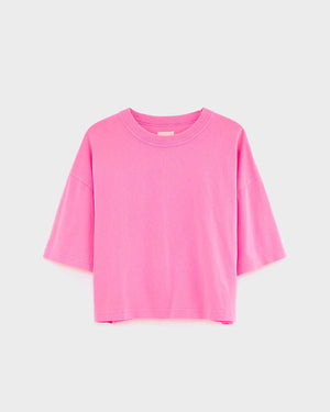 Coupe courte et décontractée / Col rond / Épaules tombantes / Manches courtes / Logo « bb » brodé en bas à droite