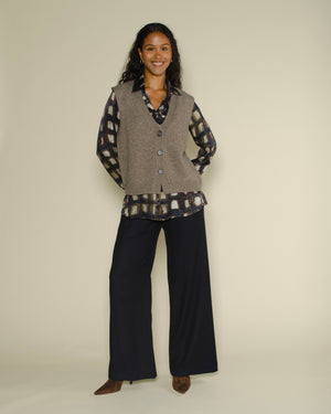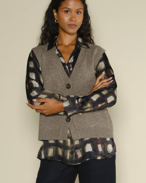 Gilet sans manches / 3 boutons à l'avant / encolure en V / look preppy