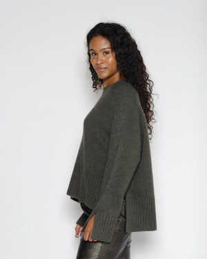 Pull Xenia pour femme 100% cachemire, col rond et coupe ample, avec des bords côtes et des fentes latérales pour un style casual et confortable. Ce pull est parfait pour cet automne/hiver, le cachemire permet de le rendre fin et très chaud, idéale à glisser sous un blazer ou un trench !