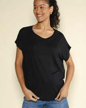 Un t-shirt de couleur noir pour femme de la marque Notshy. On adore ce t-shirt à manches courtes pour femme avec sa matière hyper confortable, un basique intemporel à avoir dans son dressing.