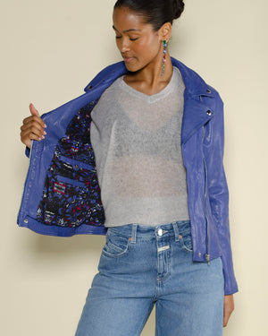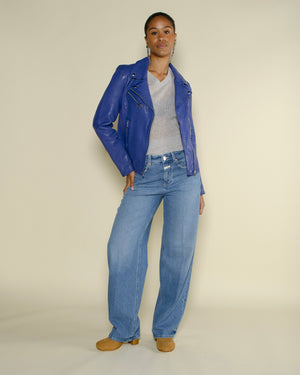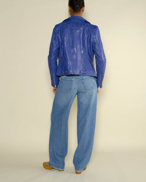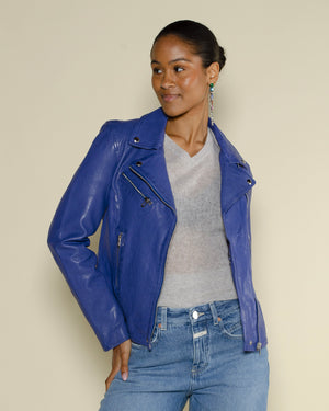 Veste en cuir bleu roi pour femme de la marque Rose Garden