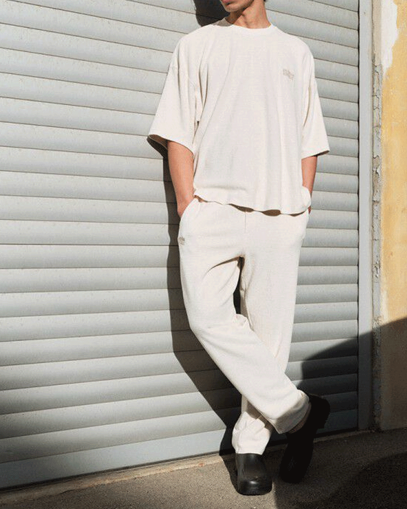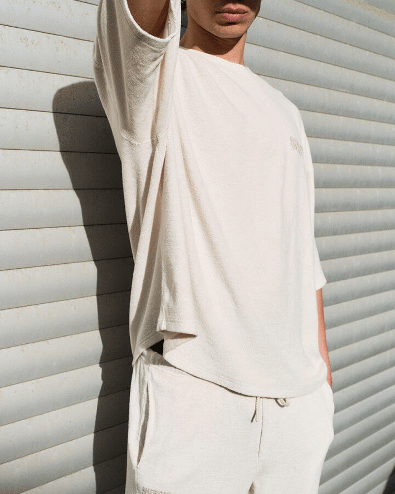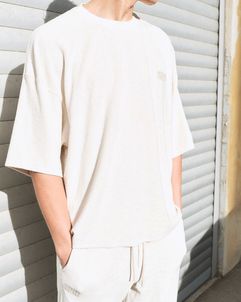 T-shirt manches courtes / Col rond / Coupe ample / Logo brodé sur la poitrine / Matière éponge / Légère et souple / Fibres issues de l'agriculture biologique / Oversize