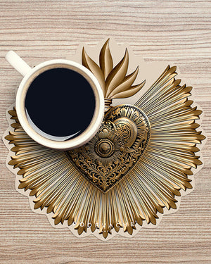 Un lot de 6 sous-verres cœur Ex Voto de la marque Pôdevache. On adore ces sous-verres avec un imprimé doré donnant une impression de relief. Protégez votre table avec style !
