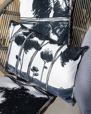 Un coussin Cap Ferret rectangulaire de la marque Pôdevache. On aime ce coussin thème Natural Cost, rappelant l'esthétique marin. Le coussin est conçu avec des matériaux durables et résistant aux intempéries, lui permettant de décorer vos espaces extérieurs.