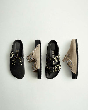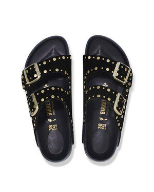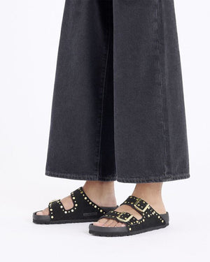 Sandales Arizona rock du créateur Birkenstock Women, la sandale parfaite pour avoir un look chic avec ses rivets et sa boucle doré. On est toujours aussi fan du modèle Arizona emblème de la marque, toujours plus confortable et intemporelle ! On découvre Birkenstock Women