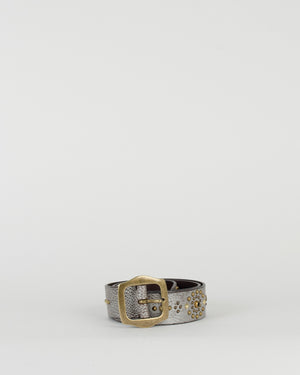 Une ceinture en cuir argentée pour un look vintage idéale pour accessoiriser vos looks ! On est fan des détails métallisés sur cette ceinture de 4 cm de largeur, on adore la boucle en métal hyper rock doré, son cuir patiné et ses détails bijoux. Découvrez toute la collection pour femme Post and co !