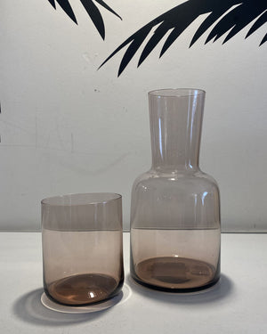 Minimaliste et sophistiqué, ce set composé d'une carafe et d'un verre rose incarne l'élégance discrète. Chaque pièce est soufflée dans un verre d'une grande pureté, aux lignes douces et équilibrées. Idéal pour un service raffiné à table, sur un plateau de nuit ou dans un intérieur contemporain. L’alliance parfaite entre utilité et esthétique.
