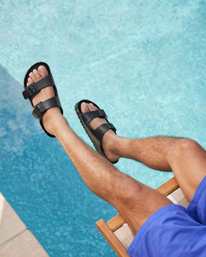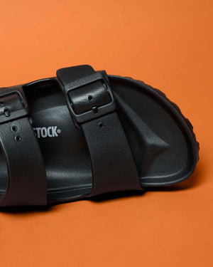 Inspiré de la sandale classique Arizona, ce modèle de sandales est en EVA. La matière synthétique de grande qualité, sans odeurs et sans substances nocives. Elle est très légère, élastique, article étanche, agréable pour la peau et offre la sensation de confort ultime de BIRKENSTOCK. Parfaite pour cet été à la sortie de l'eau, vous n'allez plus les quitter. Intemporel avec sa couleur noir, c'est la sandale qu'il vous faut cet été !