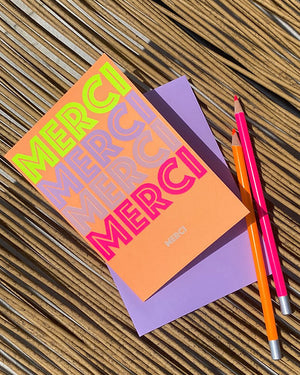 On craque pour cette carte de vœux unique "Merci", fabriquée en papier fin couleur sable et imprimée en sérigraphie avec des encres à base d’eau. Certifiée FSC, elle respecte l’environnement tout en apportant une touche artisanale et élégante pour transmettre vos messages avec style.
