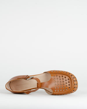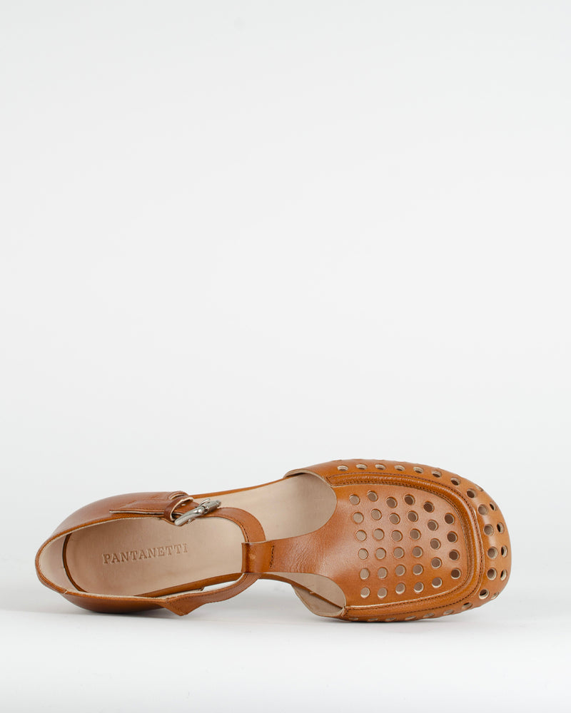 Une paire de sandales Marie Jane camel pour femme de la marque Pantanetti, parfaite pour ce printemps ! Le cuir italien de la chaussure la rend confortable et idéale pour les tenues chics.