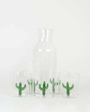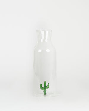 Une carafe transparente avec un cactus à l'intérieur. Un objet design très sympa pour décorer votre plus belle table. Il existe également les verres qui vont avec pour compléter le set.