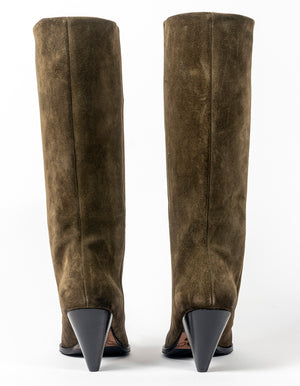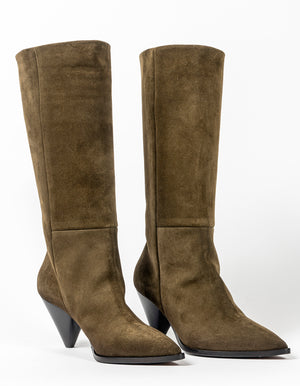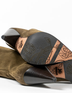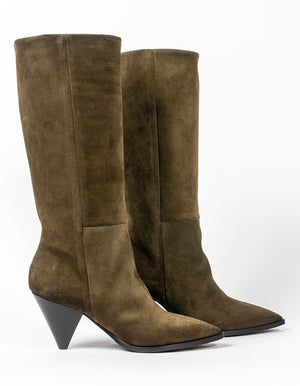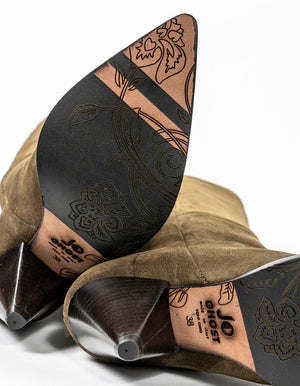 Toujours très tendance et intemporel à la fois, cette paire de bottes hautes en cuir suédé à tout pour plaire. Très féminines avec un coté bohème vous ne les quitterez pas ! Le petit + Le talon biseauté, glamour et tendance. Chez Pop on aime les porter avec une grosse sur chemise imprimé wild by Amenapih pour un look bohème et rétro.