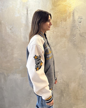 Le bomber pour femme de chez Blast off sera parfait pour la saison ! Dans un esprit  baseball américain, il conviendra parfaitement avec un jean taille basse comme ce jean Closed par exemple ! Ce bomber pour femme est hyper tendance avec sa coupe oversize.