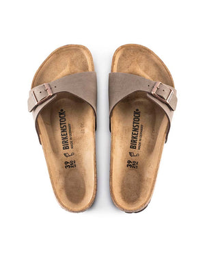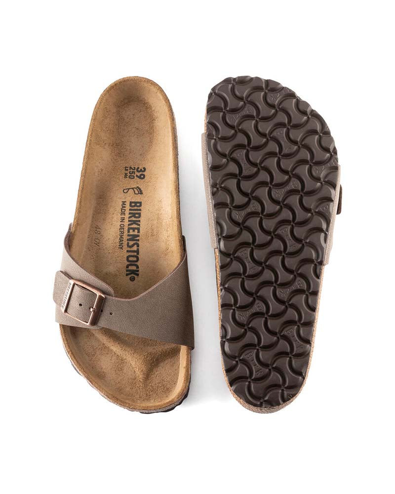 Sandales Madrid pour homme de la marque Birkenstock Coloris : Chocolat Composition : Nubuk Birko-Flor / Liège / EVA Le grand classique de chez Birkenstock, le modèle MADRID ! Cinquante ans d'histoire pour cette paire de mule Birkenstock qui est maintenant un vrai compagnon de mode. Hyper confortable, cette paire de Madrid avec sa bride épurée sera l'intemporelle de cet été ! ou de tous les jours chez soi pour un confort ultime