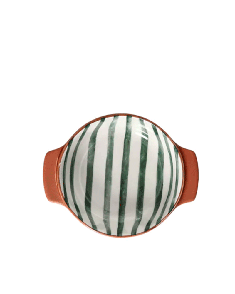 Coup de coeur pour ce plat à rayures signé Pomax. La partie à rayures à une finition vitrée et le côté marron est mat. On est fan de son design épuré et minimaliste. Compatible avec le micro-ondes et le four jusqu’à 180 degrés.