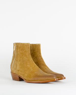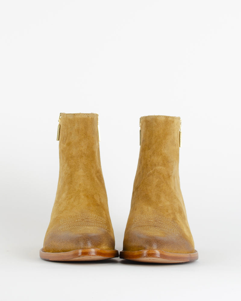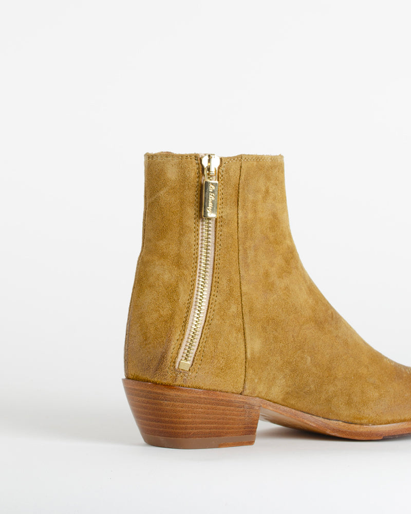 Boots tiags à talons de la marque La Bottega Di Lisa. On adore ces tiags à talons qui apportent une touche de style western à toutes vos tenues. Leur cuir effet daim et leur couleur camel en font une pièce intemporelle qui se marie parfaitement avec n'importe quel look !
